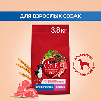 Сухой корм PURINA ONE для взрослых собак средних и крупных пород с ягненком и рисом покупаем своему псу. Берем уже давно, устраивает цена и качество. В корме содержатся витамины и полезные кислоты, которые помогают иммунитету и здоровью питомца. Для собаки корм стал любимым, кушает отлично.