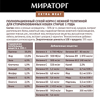 Состав товара:Сухой белок птицы, пшеница (23,0%), кукуруза (13,0%), животные жиры, лосось (8,0%), рис (4,0%), высушенная мякоть свеклы (3,0%), гидролизат белка животного происхождения, соевая мука, глицерол, минеральные вещества, высушенный корень цикория (0,5%; источник натурального пребиотика), рыбий жир, консерванты, витамины, аминокислоты, антиоксиданты.