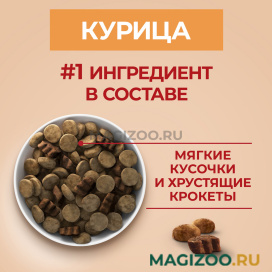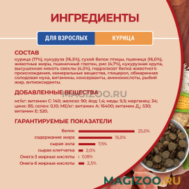 Полнорационный, вкусный и питательный сухой корм с курицей. Хорошо переносится питомцем. Не вызывает проблем с пищеварением. Бодрое и веселое состояние питомца на весь день. Цена продукта всегда на доступном уровне. Питомец любит похрустеть этими гранулами. Рекомендую однозначно.