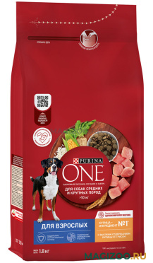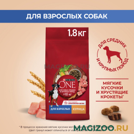 Сухой корм PURINA ONE для взрослых собак средних и крупных пород с курицей и рисом полностью соответствует тому, что требуется собакам таких пород. Состав меня радует, сколько полезных добавок, чего не встречала у других марок. Пес бодрый всегда и любит этот корм!!!