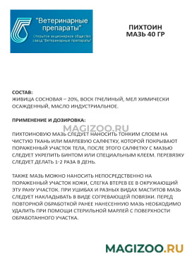 Мазь для лечения заболеваний и повреждений кожи животных.