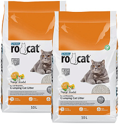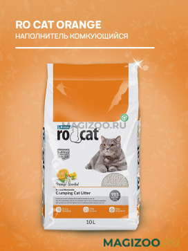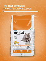 Комкующийся наполнитель нового поколения Ro Cat Orange из 100 % натурального белого бетонита с ароматом апельсина.