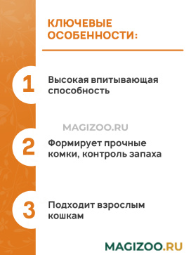 Наполнитель без запаха, не пылит и имеет очень экономичный расход.