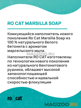 Комкующийся наполнитель нового поколения Ro Cat Marsilla Soap из 100 % натурального белого бетонита с ароматом марсельского мыла.
