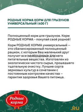 Полноценный корм для грызунов. Корм РОДНЫЕ КОРМА – покупай своё родноё!