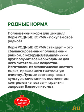 Полноценный корм для шиншилл. Корм РОДНЫЕ КОРМА – покупай своё родноё!