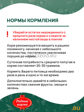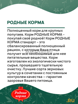 Импортные корма для крупных попугаев дороговат да и купить его сейчас сложно в связи с санкциями. Решил поискать что-нибудь российского производства. Родные корма мне посоветовала продавщица. Корм хорошего качества , чистый. Много различных семечек и фруктов. Рекомендую