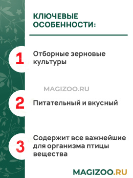 Корм изготовлен из экологически чистого сырья, прошедшего тщательную очистку.