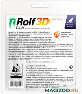 Рольф Клуб 3D капли для кошек весом от 8 до 15 кг.