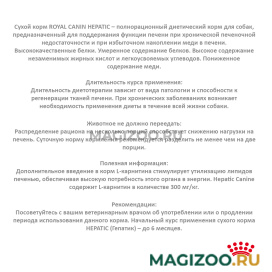 Сухой корм ROYAL CANIN HEPATIC – полнорационный диетический корм для собак, предназначенный для поддержания функции печени при хронической печеночной недостаточности и при избыточном накоплении меди в печени. Высококачественные белки. Умеренное содержание белков. Высокое содержание незаменимых жирных кислот и легкоусвояемых углеводов. Пониженное содержание меди.