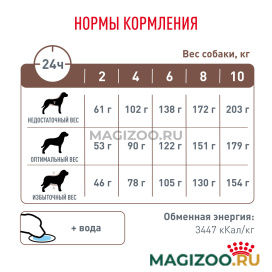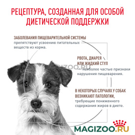 Полнорационный диетический сухой корм для взрослых собак мелких пород при нарушениях пищеварения.