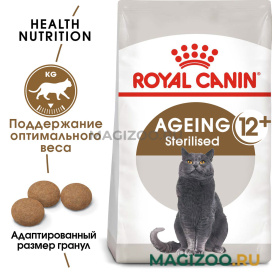 Полнорационный сухой корм для стареющих стерилизованных кошек старше 12 лет.