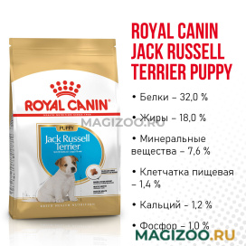 - Гармоничный рост. Щенки породы Джек Рассел терьер отличаются интенсивным быстрым ростом и высокими энергетическими затратами. Формула способствует поддержанию гармоничного роста за счет адаптированного содержания калорий, белков, кальция и фосфора.
