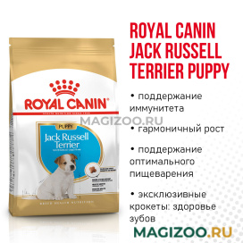 - Эксклюзивные крокеты: здоровье зубов. Форма, размер, текстура и состав крокет специально разработаны для щенков породы Джек Рассел терьер.