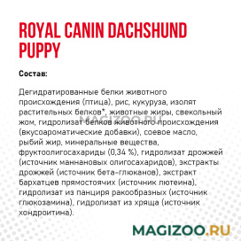 - Здоровье костей и суставов. Корм DACHSHUND PUPPY способствует поддержанию здоровья костей и суставов щенков породы такса благодаря точно рассчитанному содержанию кальция и фосфора.