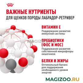 ROYAL CANIN® Labrador Retriever Puppy содержит комплекс питательных веществ – высококачественных белков (L.I.P.) и пребиотиков (FOS), нормализующих пищеварение и позволяющих поддерживать баланс кишечной флоры, а также улучшающих качество стула.