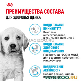 Поскольку иммунная система вашего щенка развивается постепенно, корм Royal CANIN® Labrador Retriever Puppy содержит эксклюзивный комплекс антиоксидантов, включая витамин Е, для поддержания естественной защиты в ключевой период роста.