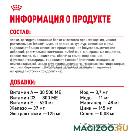 Информация о составе и ингредиентах, цветовом решении, технических и иных характеристиках, стране-изготовителе, внешнем виде и комплекте поставки товара носит справочный характер и основана на последних доступных к моменту публикации сведениях. Доставка данного товара осуществляется во все регионы РФ.Развитие ROYAL CANIN всегда обусловлено научными исследованиями. В ROYAL CANIN работает команда профессионалов – ветеринарных врачей и специалистов в области питания
