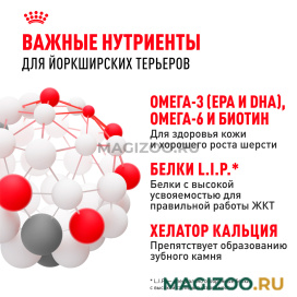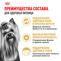 Корм ROYAL CANIN® Yorkshire Terrier Adult, предназначенный для собак породы йоркширский терьер старше 10 месяцев, разработан в соответствии со всеми потребностями вашей взрослой собаки в питательных веществах.
