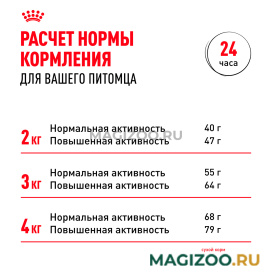 Информация о составе и ингредиентах, цветовом решении, технических и иных характеристиках, стране-изготовителе, внешнем виде и комплекте поставки товара носит справочный характер и основана на последних доступных к моменту публикации сведениях. Доставка данного товара осуществляется во все регионы РФ.Развитие ROYAL CANIN всегда обусловлено научными исследованиями. В ROYAL CANIN работает команда профессионалов – ветеринарных врачей и специалистов в области питания
