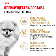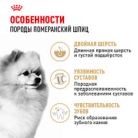 Форма, размер, текстура и состав гранул специально разработаны с учетом неболшого размера челюстей собак породы Померанский Шпиц.
