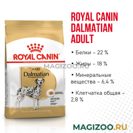 Далматин покоряет своей красотой с первого взгляда. Эта собака нуждается в адаптированном питании, которое вы можете обеспечить, приобретая специализированный корм для далматина Dalmatian Adult. Он содержит в себе множество веществ, жизненно необходимых собакам этой породы, благоприятно влияет на красоту шерсти и кожи, поддерживает стабильный вес и нормализует мышечный тонус.