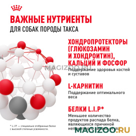 Корм ROYAL CANIN® Dachshund Adult, предназначенный для собак породы такса старше 10 месяцев, разработан специально с учетом всех потребностей вашей взрослой собаки в питательных веществах для поддержания ее здоровья и хорошего самочувствия.