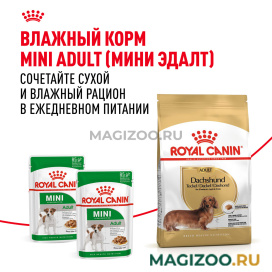 Для удовлетворения индивидуальных предпочтений каждой собаки ROYAL CANIN® Dachshund Adult выпускается также в виде влажного корма – в форме нежного и вкусного паштета.