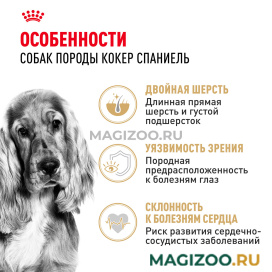 Кроме того, форма и размер гранул ROYAL CANIN® Cocker Adult разработаны специально для породы кокер-спаниель.