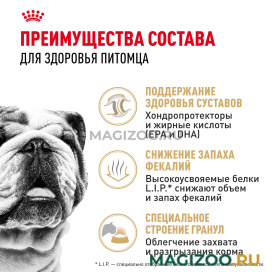 ROYAL CANIN® Bulldog Adult помогает поддерживать здоровый баланс кишечной микрофлоры. Это не только способствует общему здоровью пищеварительной системы вашей собаки, но и помогает уменьшить запах стула.