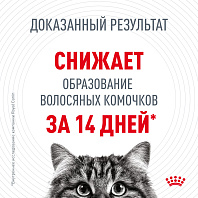 - Доказанная эффективность. Заметный результат через 14 дней кормления только продуктом HAIRBALL CARE: вдвое* больше шерсти выводится с фекалиями.