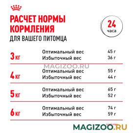 Информация о составе и ингредиентах, цветовом решении, технических и иных характеристиках, стране-изготовителе, внешнем виде и комплекте поставки товара носит справочный характер и основана на последних доступных к моменту публикации сведениях. Доставка данного товара осуществляется во все регионы РФ.Развитие ROYAL CANIN всегда обусловлено научными исследованиями. В ROYAL CANIN работает команда профессионалов – ветеринарных врачей и специалистов в области питания