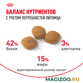Информация о составе и ингредиентах, цветовом решении, технических и иных характеристиках, стране-изготовителе, внешнем виде и комплекте поставки товара носит справочный характер и основана на последних доступных к моменту публикации сведениях. Доставка данного товара осуществляется во все регионы РФ.Развитие ROYAL CANIN всегда обусловлено научными исследованиями. В ROYAL CANIN работает команда профессионалов – ветеринарных врачей и специалистов в области питания