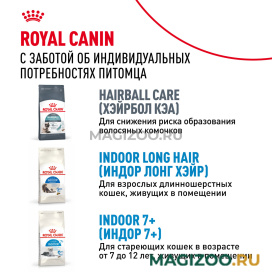 Обратите внимание также и на другие продукты гаммы ROYAL CANIN® Indoor: Indoor Appetite Control, Indoor Long Hair и Indoor 7+. Можно выбрать среди них оптимальный с учетом возраста, образа жизни и типа шерсти вашей кошки.