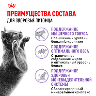 - Поддержание оптимального веса. Помогает поддерживать оптимальный вес благодаря ограниченному содержанию жиров, оптимальному уровню белков и входящему в состав корма L-карнитину.