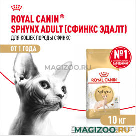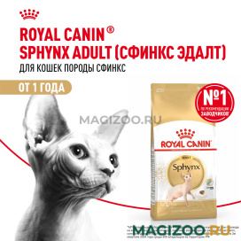 Полнорационный корм для взрослых кошек породы сфинкс старше 12 месяцев.