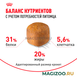 Широчайшая линейка кормов бренда ROYAL CANIN позволит подобрать подходящий корм для каждого уникального питомца! Размер животного, порода, возраст, вес, вкусовые предпочтения, активность и многие другие аспекты являются важнейшими при выборе корма, именно поэтому ROYAL CANIN сделал все для того, чтобы учесть и удовлетворить все потребности Вашего любимца!