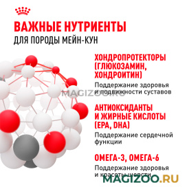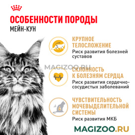 Полнорационный корм для кошек породы мейн-кун в возрасте старше 15 месяцев, а также для кошек пород Сибирская и Норвежская лесная.