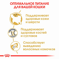 Крепкая, хорошо сложенная сибирская кошка - национальное достояние России и непременная героиня народных сказок. Её плотная шерсть с двойным подшерстком действительно водонепроницаема: она обладает водоотталкивающими свойствами. Рацион ROYAL CANIN® Siberian Adult учитывает эту особенность, поэтому содержит комплекс разнообразных питательных веществ, в том числе, аминокислот, витаминов, жирных кислот Омега-3 и Омега-6, благодаря чему поддерживается здоровье кожи и красота шерсти.