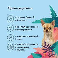 - Поддержание здоровья кожи и красоты шерсти. Содержащиеся аминокислоты, витамины, жирные кислоты Омега 3 и Омега 6 способствуют здоровью кожи, красоте шерсти, сохраняя ее плотной и густой.