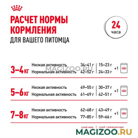 Здравствуйте. Производитель рекомендует этот корм для британских короткошерстных кошек. Стерилизованные животные могут употреблять его в меньших объемах. Производитель утверждает, что для животного весом 3-4 кг достаточно около 50 г корма, но стерилизованному питомцу понадобится не более 40 г. Эта информация указана в рекомендациях по кормлению.