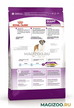 Полноценный сухой рацион для взрослых собак гигантских пород (весом более 45 кг) старше 18-24 месяцев.