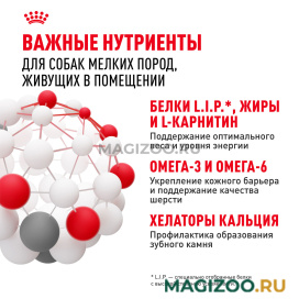 Полнорационный сухой корм для взрослых собак мелких пород (весом менее 10 кг) в возрасте от 10 месяцев и старше, живущих главным образом в помещении.