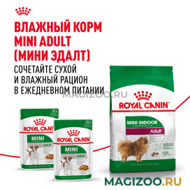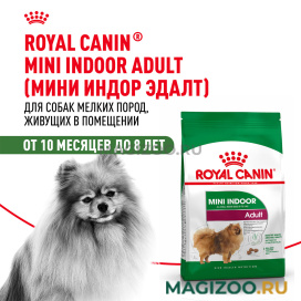ROYAL CANIN® Mini Indoor Adult предназначен для маленьких собак (весом до 10 кг) в возрасте от 10 месяцев и разработан с учетом их потребностей в питательных веществах.