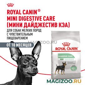 Корм ROYAL CANIN® Digestive Care Mini для собак весом до 10 кг был разработан специально для собак с чувствительным пищеварением. Собаки мелких пород часто привередливы в питании, поэтому формула продукта ROYAL CANIN® Digestive Care Mini имеет привлекательный аромат и высокую аппетитность.