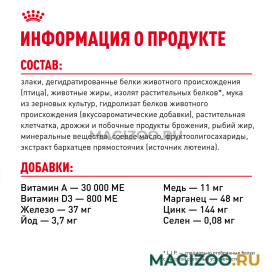 Информация о составе и ингредиентах, цветовом решении, технических и иных характеристиках, стране-изготовителе, внешнем виде и комплекте поставки товара носит справочный характер и основана на последних доступных к моменту публикации сведениях. Доставка данного товара осуществляется во все регионы РФ.Развитие ROYAL CANIN всегда обусловлено научными исследованиями. В ROYAL CANIN работает команда профессионалов – ветеринарных врачей и специалистов в области питания