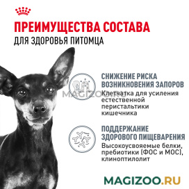 Собаки мелких пород часто страдают от затруднений при дефекации, в том числе запоров. Уникальная формула ROYAL CANIN® Digestive Care Mini оказывает комплексное воздействие на этот тип чувствительности, регулируя кишечную перистальтику.