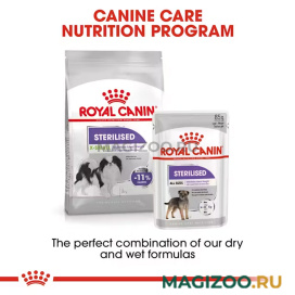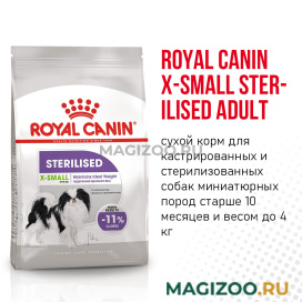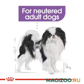 Сухой корм для кастрированных и стерилизованных собак миниатюрных пород старше 10 месяцев и весом до 4 кг.