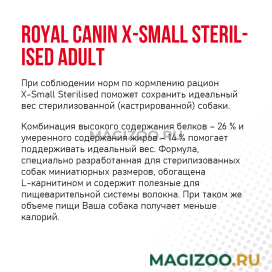 При соблюдении норм по кормлению рацион X-Small Sterilised поможет сохранить идеальный вес стерилизованной (кастрированной) собаки.