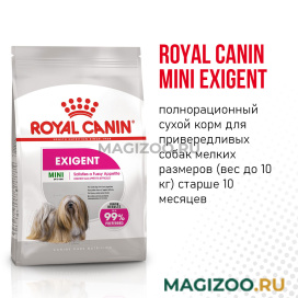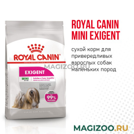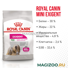 - Стимулирует аппетит даже у привередливых животных. Благодаря специально подобранным ингредиентам, корм MINI EXIGENT обладает ароматом, стимулирующим аппетит даже самых привередливых собак.